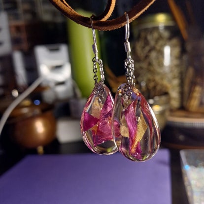 Encased in crystal-clear resin, these rose petal earrings hold the timeless essence of love — not the fleeting kind, but the ancient, heart-steadying magic that poets warned us about.
