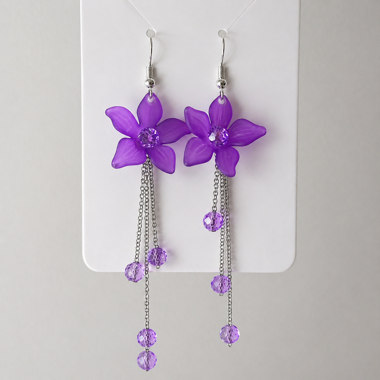 Enchanting violet flowers with cascading crystal drops that shimmer like moonlit rain. These earrings carry dreamy, creative energy and a touch of mystical elegance. 💜✨